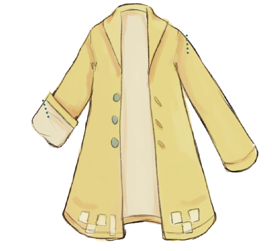 Utsidan skall vara Gul eller unange och Skall vara ett tjokt bomull eller ull tyg
