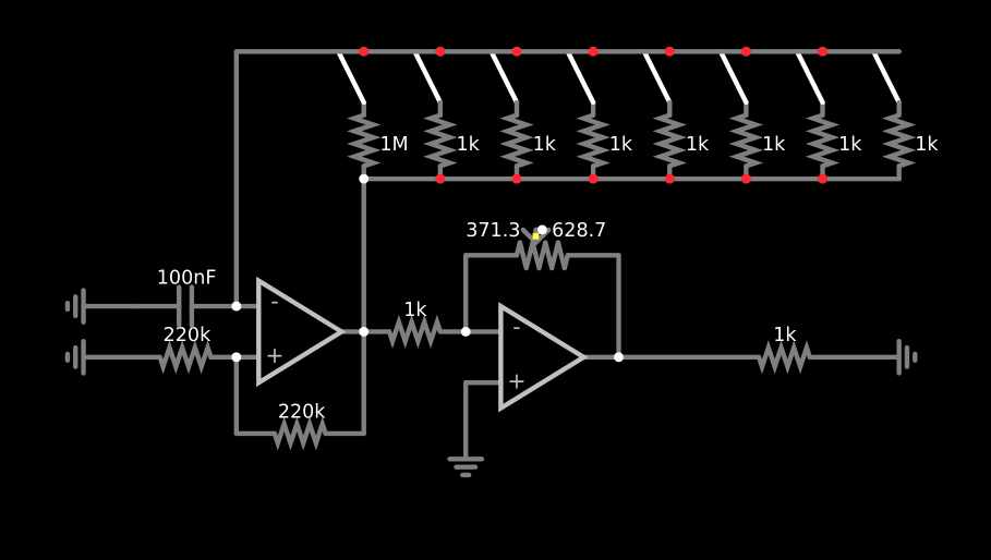 Här är den slutgiltiga designen fast ihoplädad, obsarvera att jag använder en tl074 istälet fär två tl071 eftresom att jag trode jag behövde mer en två