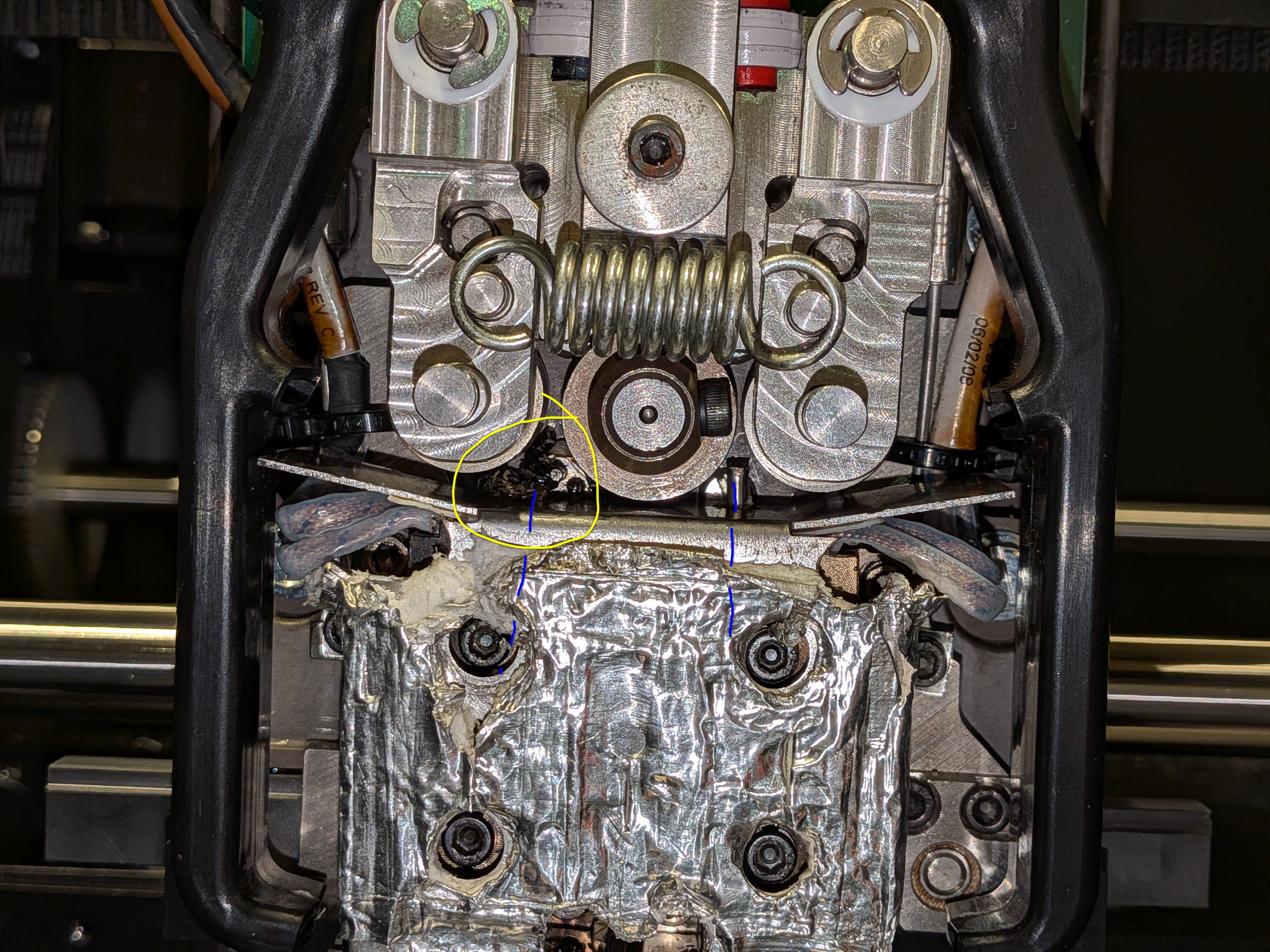 uPrint använder ett intresant skrivar huvod viken vippar mellan två positioner. Den avänder även ståltuber med en lite pipa som nozzle