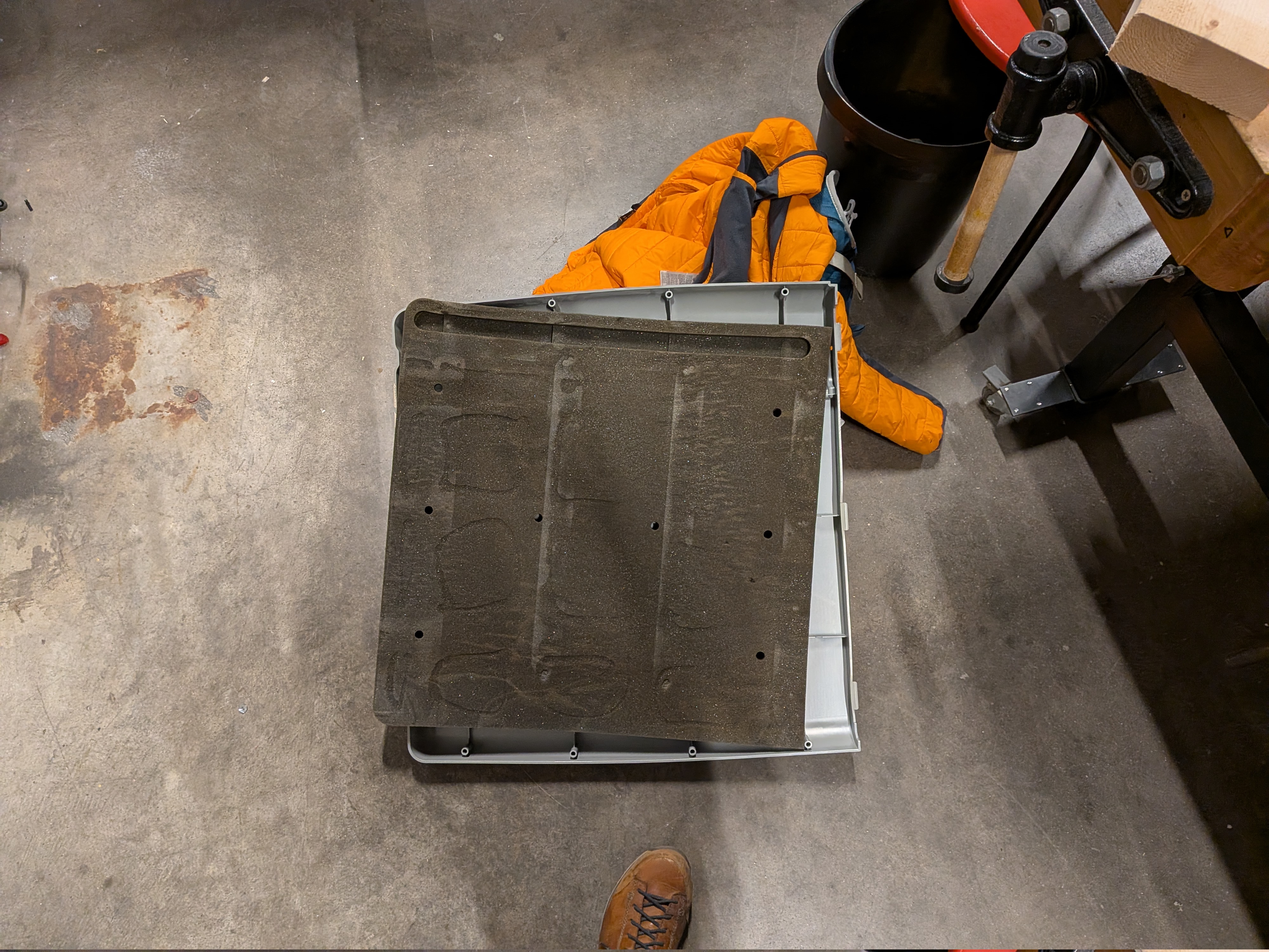 Skrivaren behöver ett nyt bord eftersom att skrivaren är >40kg och två av hjulen har rendan böjt. Skrivaren har monterings håll på undersidan där du kan läga till en till material hållare vilka vi kan avända för att montera den på ett bättre bord.