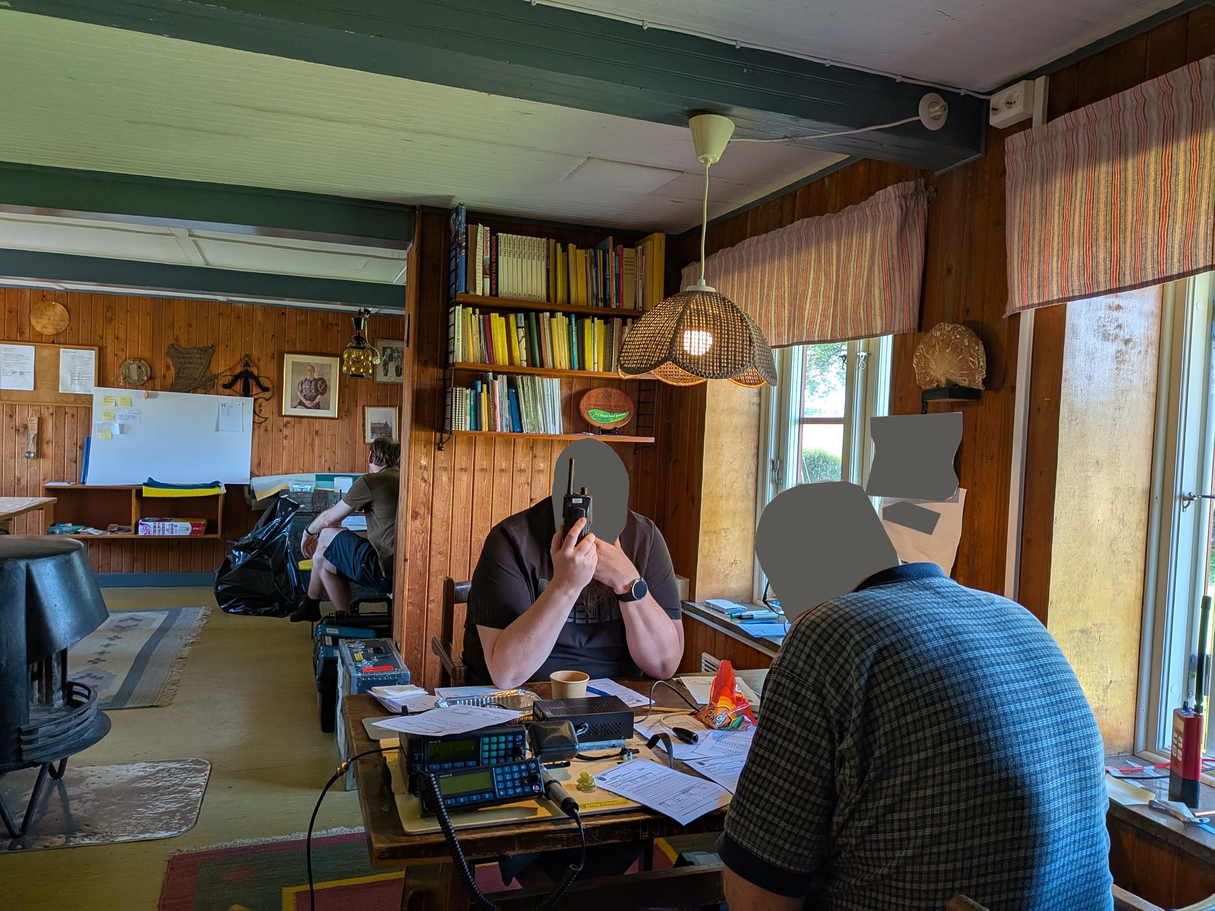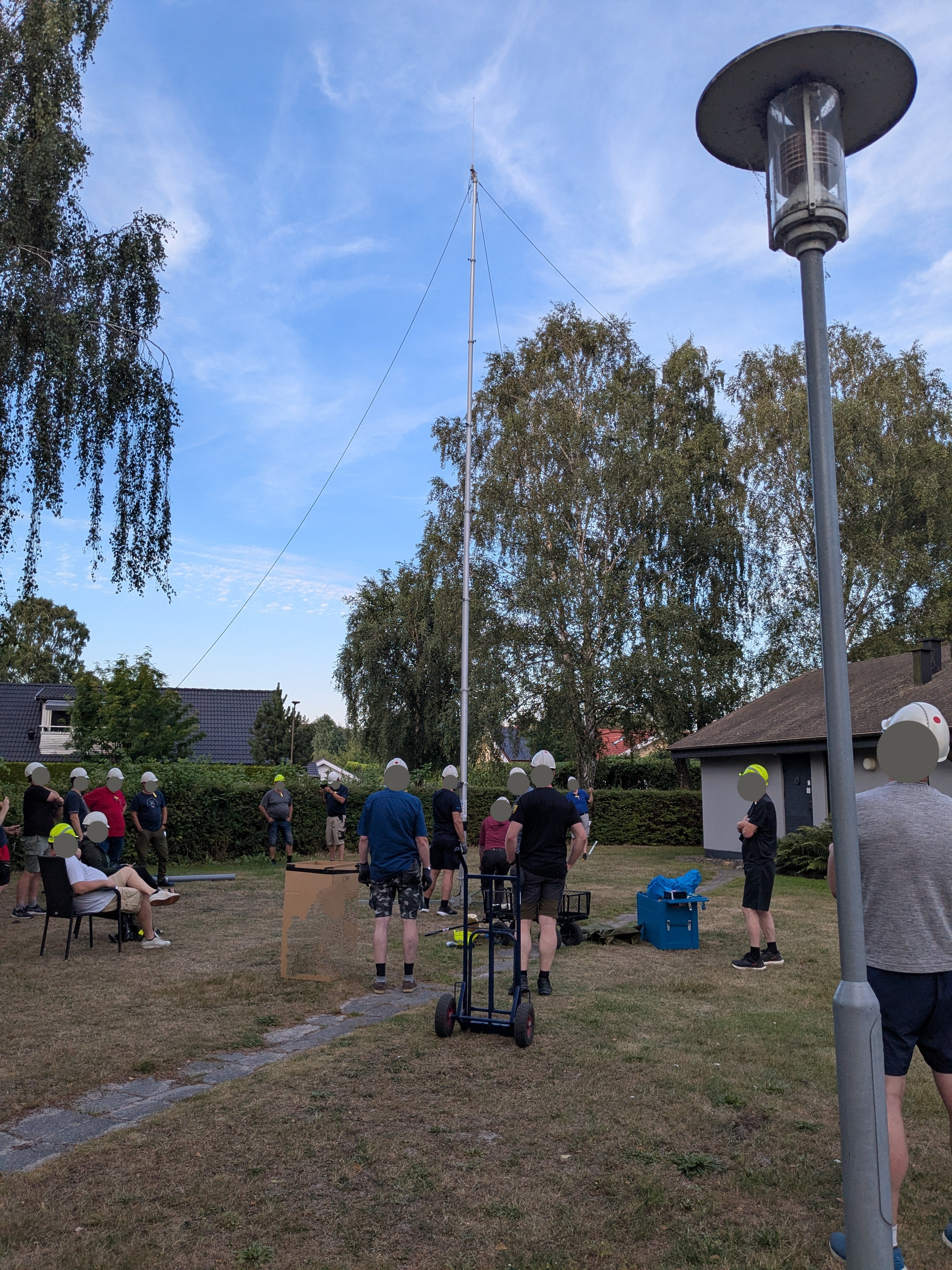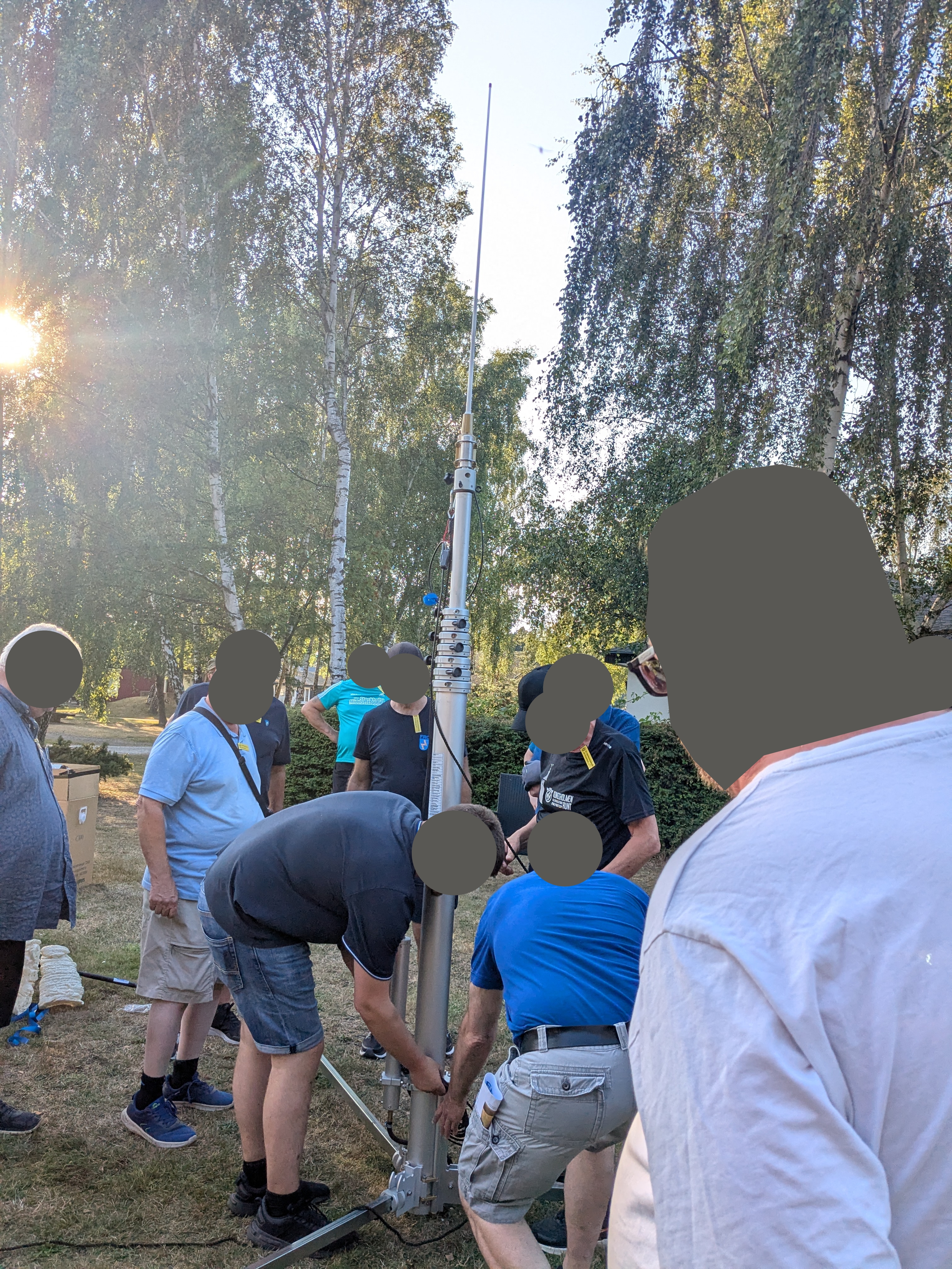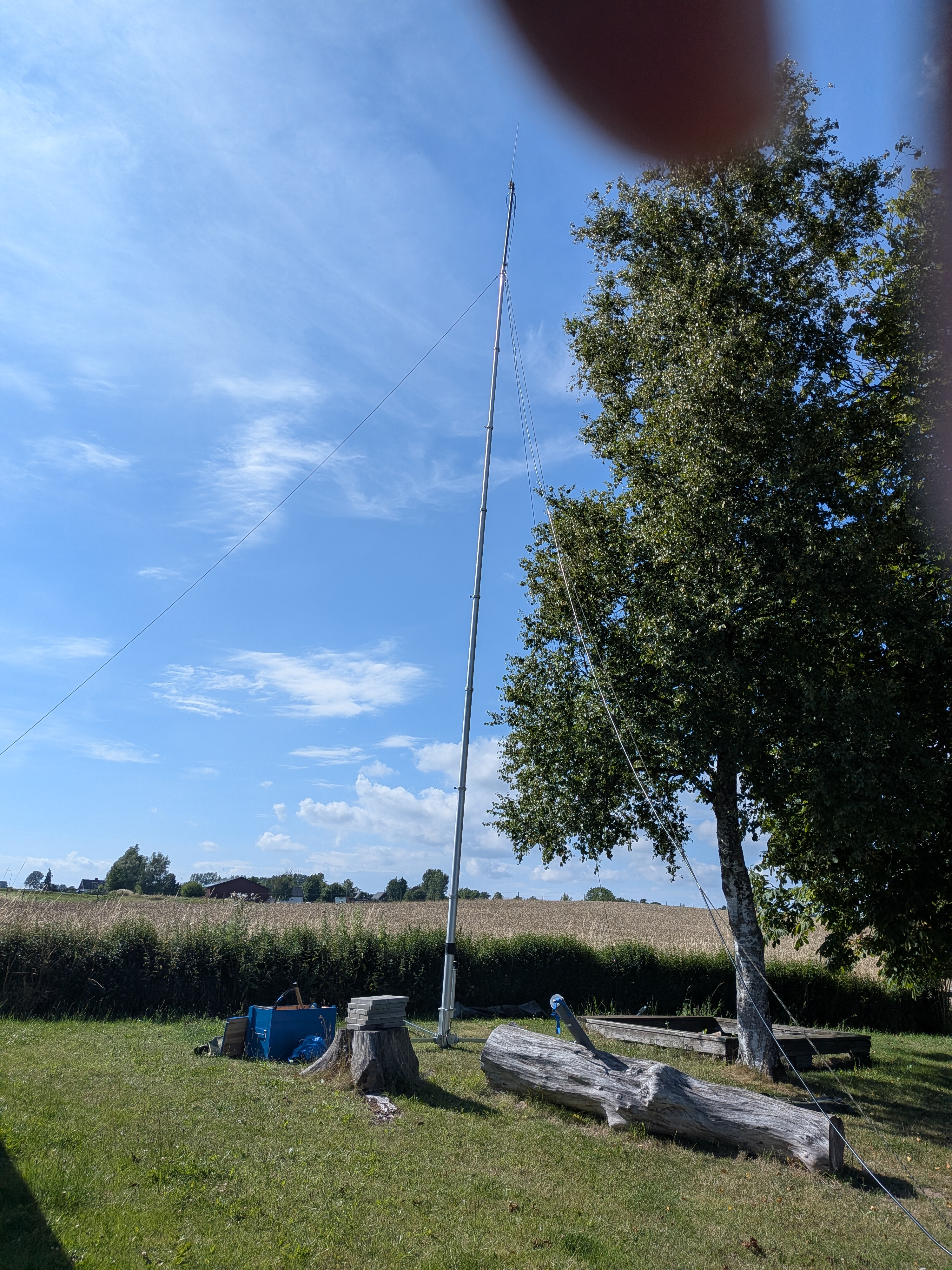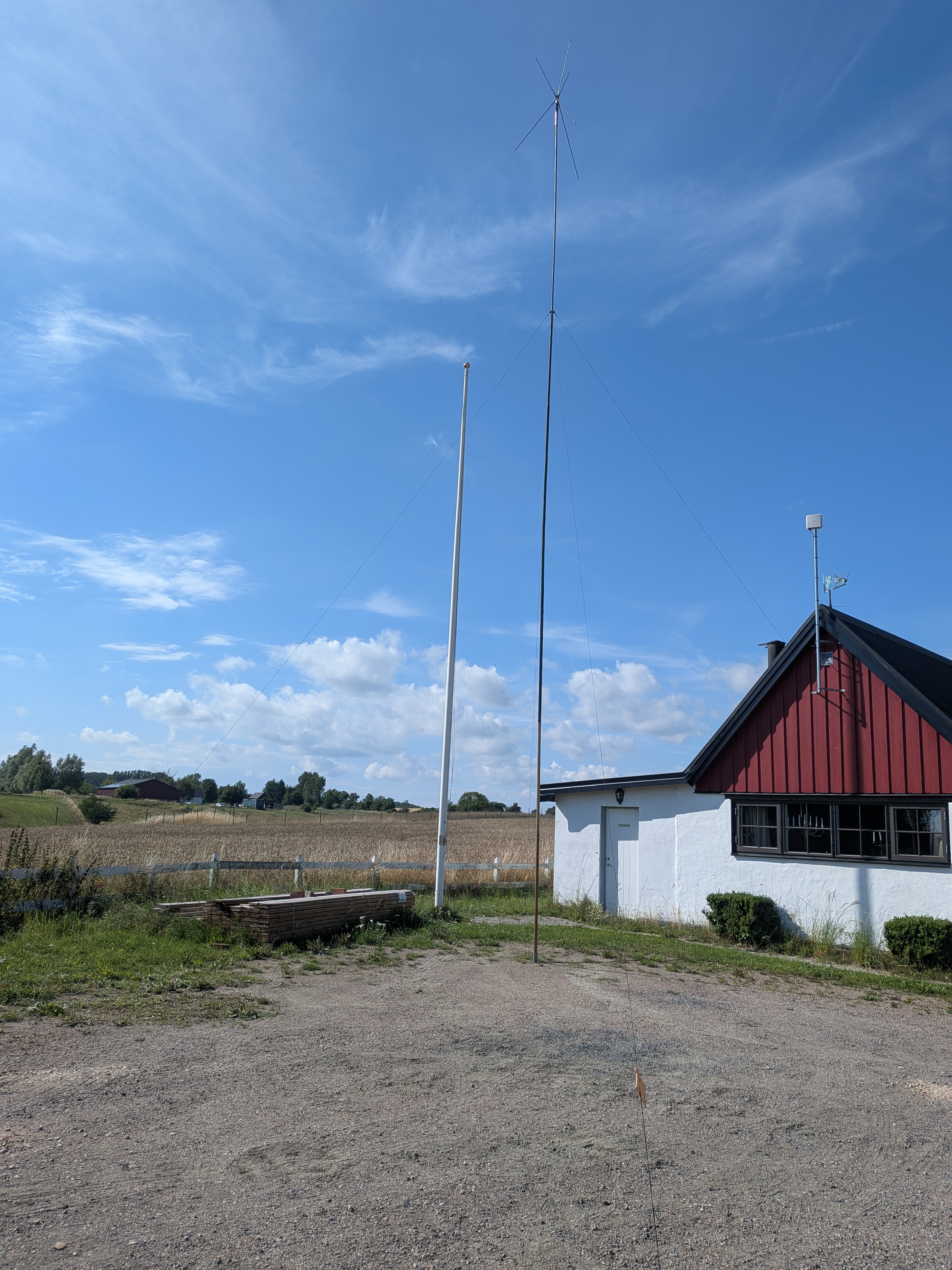 Den gröna masten även kallad Civil masten. Visade sig att vi förstörde en av kablarna i antenen när vi flytade den, så det blev inget samband på 80mHz