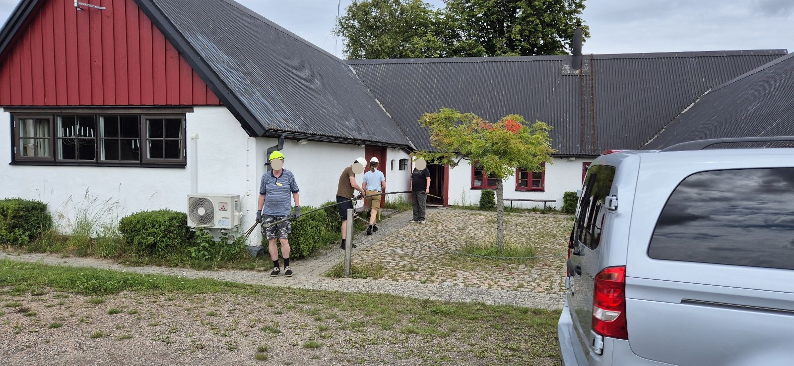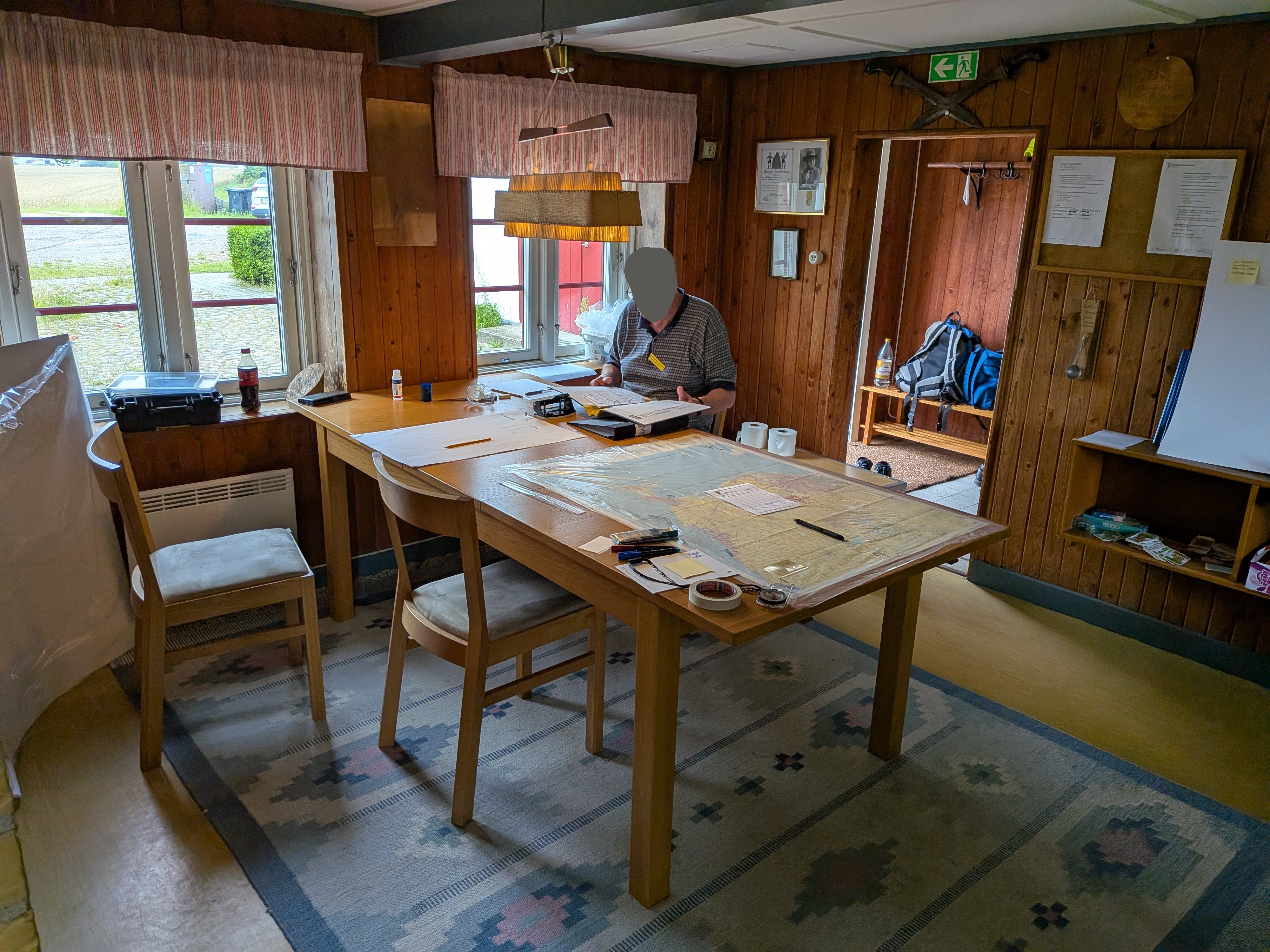 Vi hatte lite problem att komma in till byggnaden eftersom att kåden började gella vid 08:00 men vi var där 07:30 så vi började säta up i vindskydet utanför