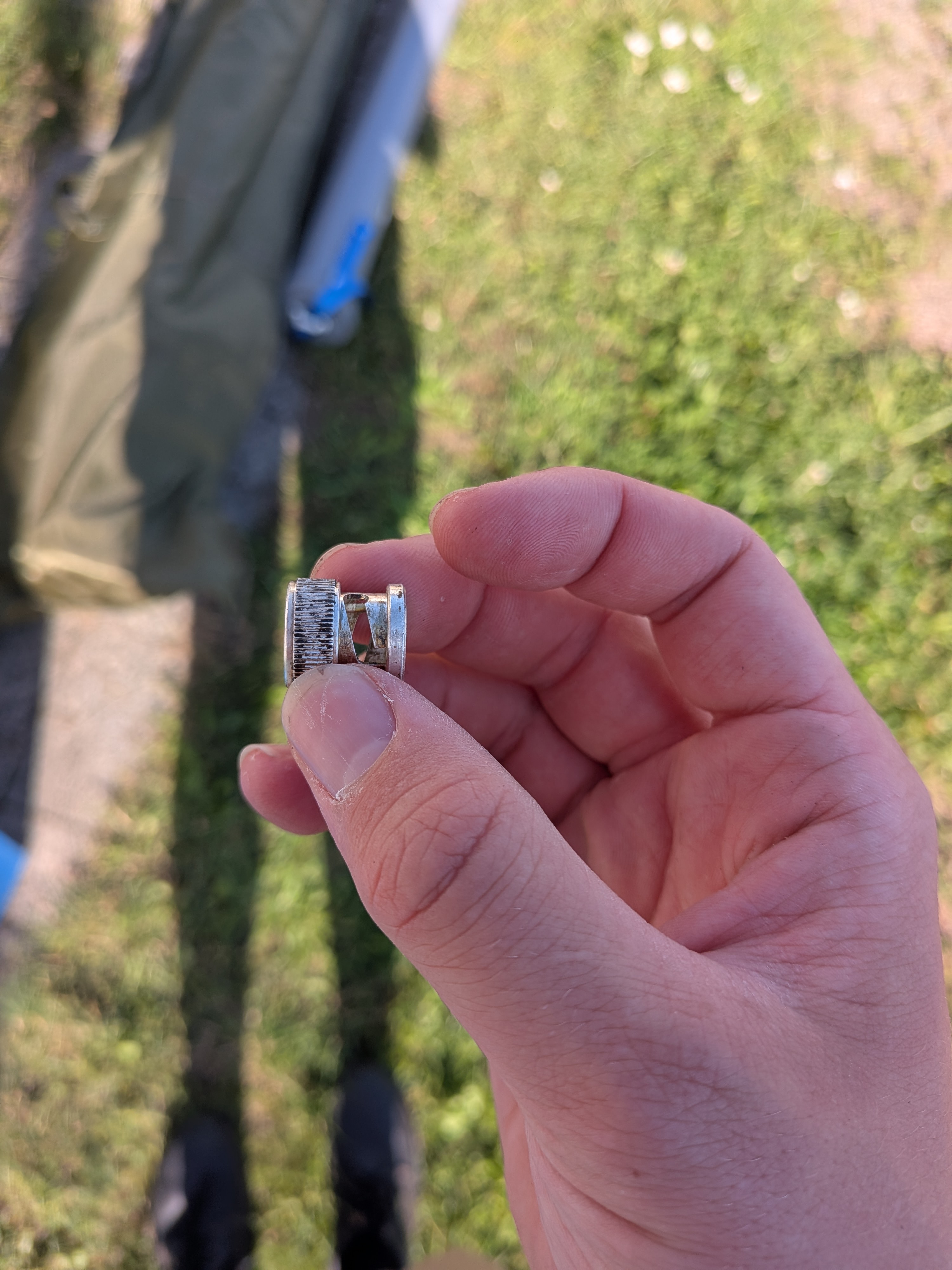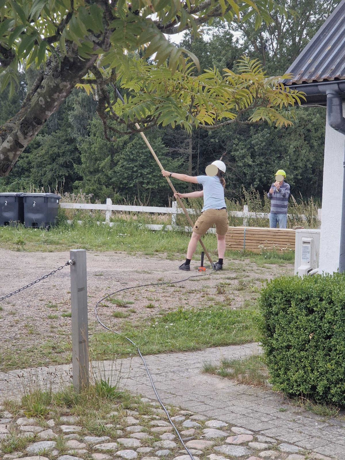 Bild på 150mHz masten och mit finger i fält, vi monterade ett rör från den gröna masten för att få lite längre räkvid, fungrade anska väl